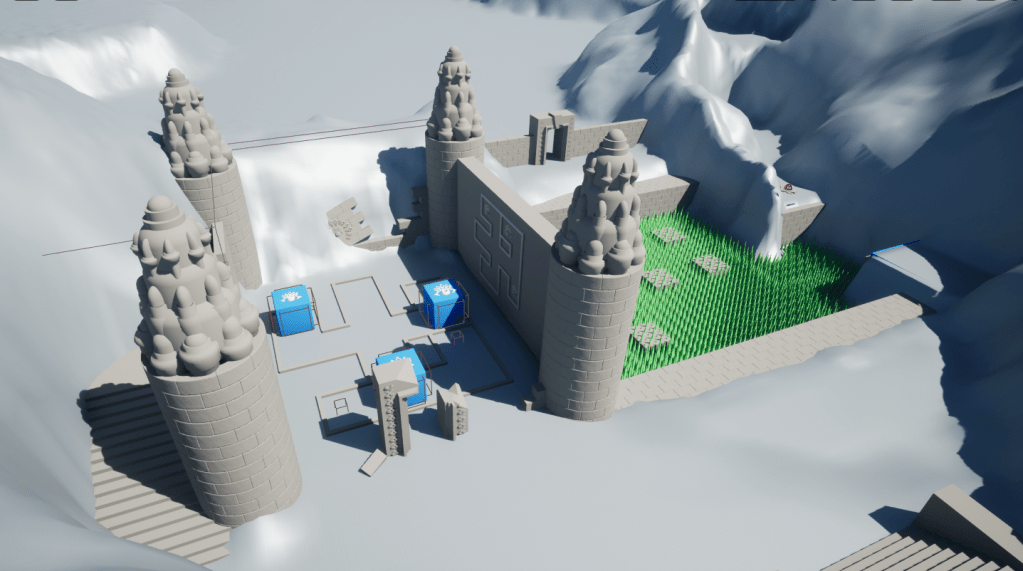 (Above) Blockmesh, landscape editing, and all modeling done in UE5 without the use of Maya or Blender.